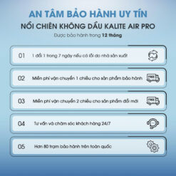 Nồi chiên không dầu KALITE Air Pro là dòng nồi chiên hiện đại, sở hữu dung tích lớn 12 lít, công suất mạnh mẽ 1500W cùng khoang nồi inox 304 cao cấp, giúp chế biến món ăn giòn ngon – chín nhanh – an toàn cho sức khỏe. Sản phẩm phù hợp cho gia đình hiện đại yêu thích nấu ăn tiện lợi và lối sống lành mạnh.