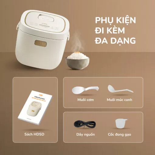 Chế độ nấu: Cơm thường, cơm niêu/cháy, gạo lứt, cháo, hầm/soup, hâm nóng.