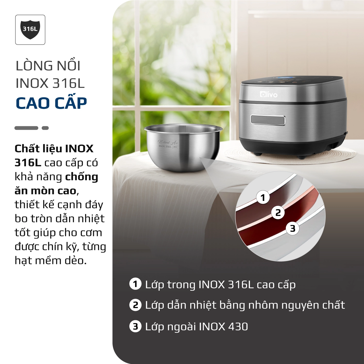 Nồi cơm điện cao tần OLIVO RC900IH là thiết bị nấu cơm cao cấp, giúp nâng tầm trải nghiệm bếp Việt hiện đại. Sản phẩm ứng dụng công nghệ nấu cao tần IH (Induction Heating) cho nhiệt lượng lan tỏa đều 360 độ từ đáy, thân đến nắp nồi, giúp cơm chín đều, mềm dẻo, giữ trọn độ ẩm và hương vị tự nhiên.